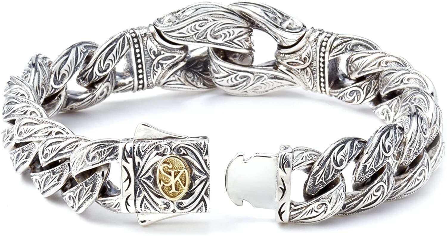 Scott Kay Sparta Collection Sterling Silver Skull Bracelet with Sparta Engraving